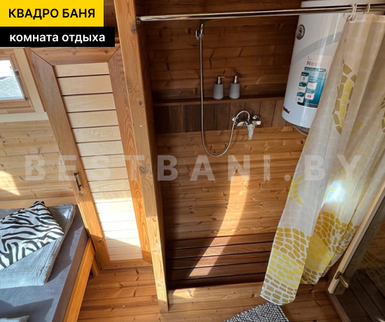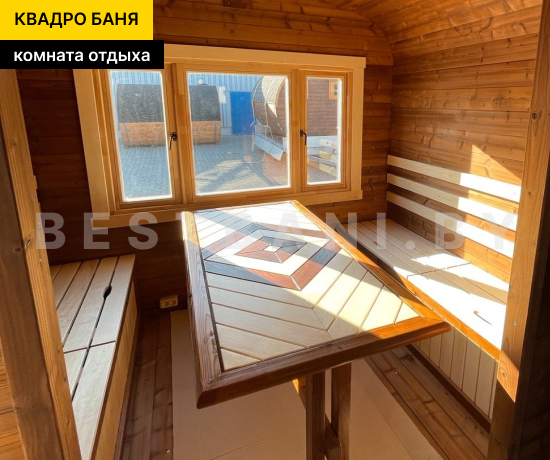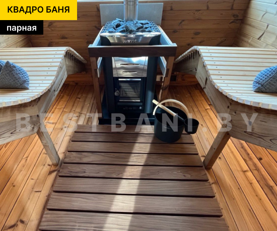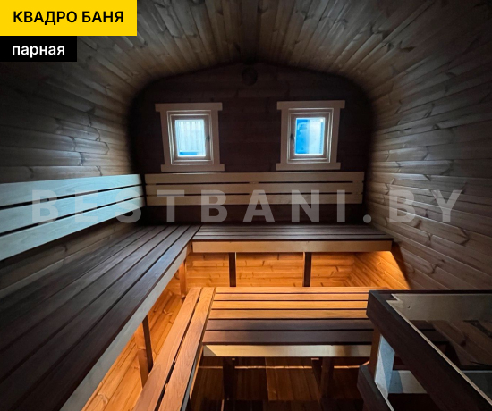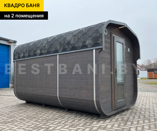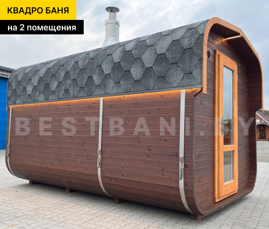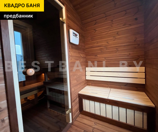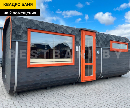 Квадро-баня с двумя помещениями выпускается в размерах от 3,5 до 6 метров и предлагает практичное, комфортное решение для полноценного банных процедур и отдыха на загородном участке в любое время года. Это готовая баня под ключ для 3–6 человек, в которой пространство логично разделено на парную и отдельную зону отдыха. Такой формат подходит для дачи, частного дома или гостевого использования и позволяет париться и отдыхать с комфортом, не смешивая зоны. В зависимости от длины квадро-баня выходит на рабочую температуру 90–100 °C в среднем за 1,5–2 часа при экономичном расходе дров или электроэнергии.