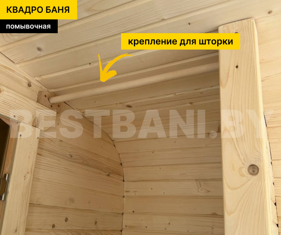 Каркас квадро-бани выполнен из ели толщиной 47–50 мм по финской технологии «лунный паз». Брус плотно стыкуется, не продувается и надёжно удерживает тепло, работая как натуральный «термос» из дерева. Такая конструкция «дышит»: во время парения древесина впитывает лишнюю влагу, а после остывания выводит её наружу, снижая риск конденсата и гниения. При правильной эксплуатации служит много лет, сохраняя геометрию, тепло и аромат натуральной древесины. Снаружи квадро-баня бочка покрывается защитной пропиткой, которая оберегает брус от влаги, грибка и насекомых.