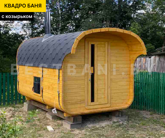 Козырёк в бане квадро-бочке — это не только декор, но и практичная деталь: